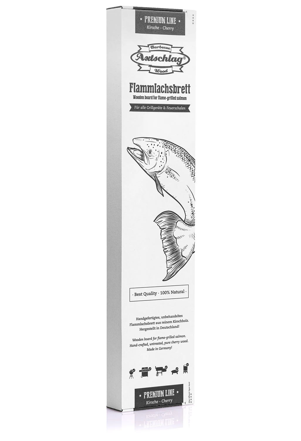 Das hochwertige Premium Flammlachsbrett Kirsche von Axtschlag bietet tolle Highlights: