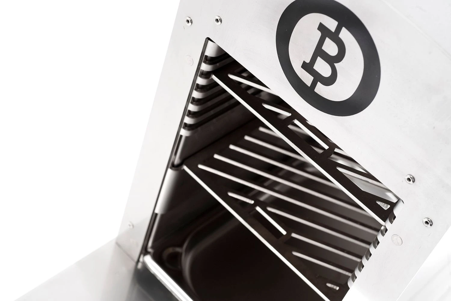 Der Beefer One Chef verfügt – wie auch das PRO Modell – eine elektrische Zündung und ein feinstufiges Einschubraster zur bequemen Höhenverstellung des Grillrostes. Der Grillrost lässt sich einfach mit nur wenigen Handgriffen entnehmen und auch in der Spülmaschine reinigen.
