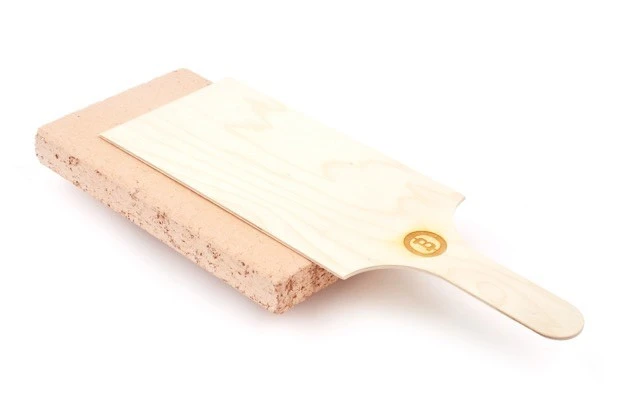 Mit dem im Lieferumfang enthaltenen Pizzaschieber aus Holz lässt sich die Pizza mühelos auf den Stein schieben und auch wieder herunternehmen.