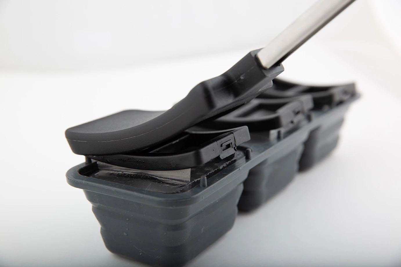 Füllen Sie einfach Wasser in die 3-Kammer Eisform und setzen Sie anschließend die Halteclips ein. Für eine noch bessere Reinigungswirkung können Sie dem Wasser noch Zitronensaft als natürlichen Entfetter hinzugeben. Nun muss das Wasser nur noch im Gefrierschrank einfrieren und schon sind drei Grillbürsten einsatzbereit.