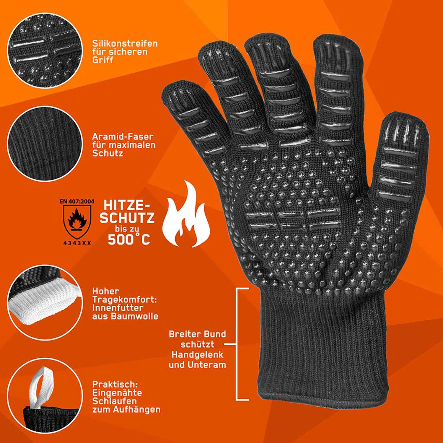 - zuverlässiger Schutz für die Hände vor Hitze und Verbrennungen