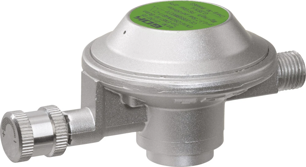 Der GOK Gasregler dient zur Druckregelung auf den Nenndruck des Gasgerätes (50 mbar) und besitzt zusätzlich ein Absperrventil.
