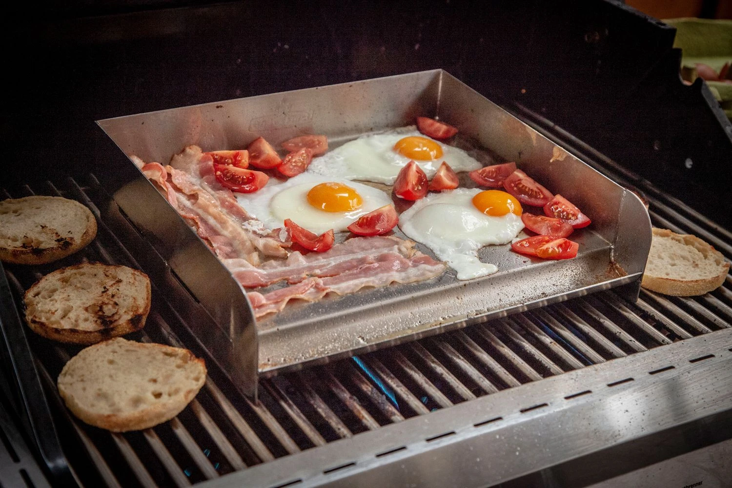 Das alles macht die Grillfürst Edelstahl Grillplatte zu einem perfekten Begleiter am Grill, vom Plancha-typischen Gemüse über Fisch, Meeresfrüchte, Fleisch und Pasta bis hin zum klassischen Frühstück vom Grill – Spiegeleier mit gebratenem Speck – ist alles möglich!