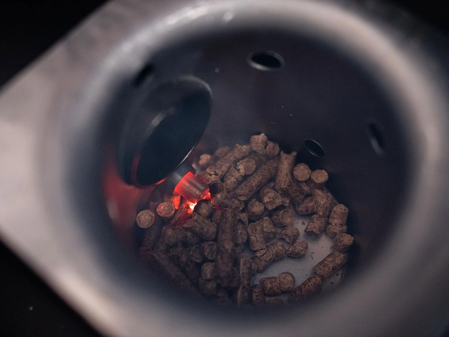 Dazu befördert die Förderschnecke die Pellets vom Pellettank bis in den Brenntopf. Im Pellettopf angekommen werden die Pellets von einem Brennstab mit Hilfe eines zusätzlichen Lüfters entzündet. So gelangt genau die richtige Menge an Holzpellets in den Brenntopf, um konstant die gewünschte Temperatur halten zu können.