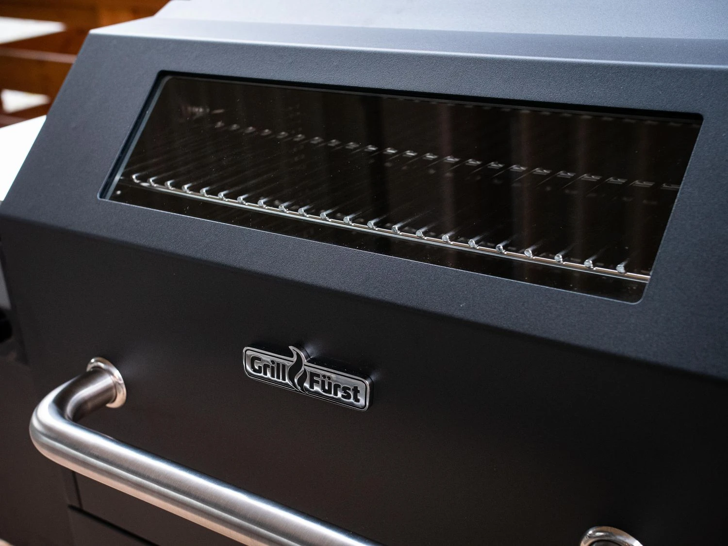 Wer dennoch einen Blick riskieren möchte, kann das beim Grillfürst Pelletgrill einfach durch die im Deckel integrierte Sichtscheibe tun. Und das, ohne Gefahr zu laufen, durch das Öffnen des Deckels die Garraumtemperatur abzusenken.