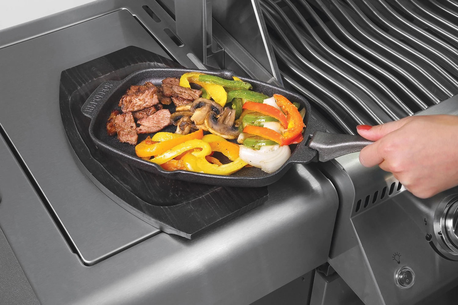 1x Napoleon Gusseiserne Pfanne mit Holz Untersetzer