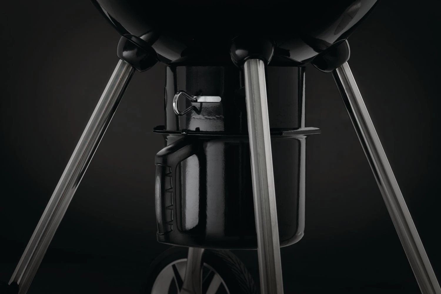 Der Deckel beherbergt eine ganze Reihe von gut durchdachten Funktionen. Zum einfachen Ablesen der Garraumtemperatur befindet sich im Deckel – gleich neben dem Abluftschieber – ein Thermometer. Auf der Oberseite des Deckels ist ein stabiler Griff mit eingebautem Hitzeschutz montiert. Wenn Sie auf der Grillfläche mit beiden Händen arbeiten müssen, kann der Deckel platzsparend an die Seite der Kugel gehängt werden.
