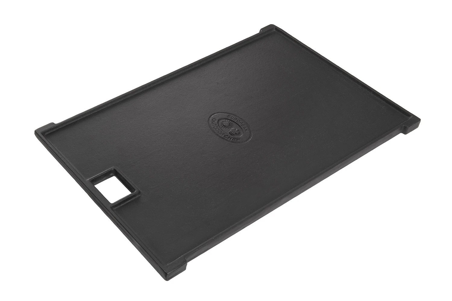 Mit der Gusseisen Grillplatte von Outdoorchef bereiten Sie einfach Eier, Speck, kleinteiliges Grillgut oder sogar Steaks auf der Platte zu – ohne, dass etwas durch den Grillrost fallen oder Fett und austretende Flüssigkeiten heruntertropfen können.