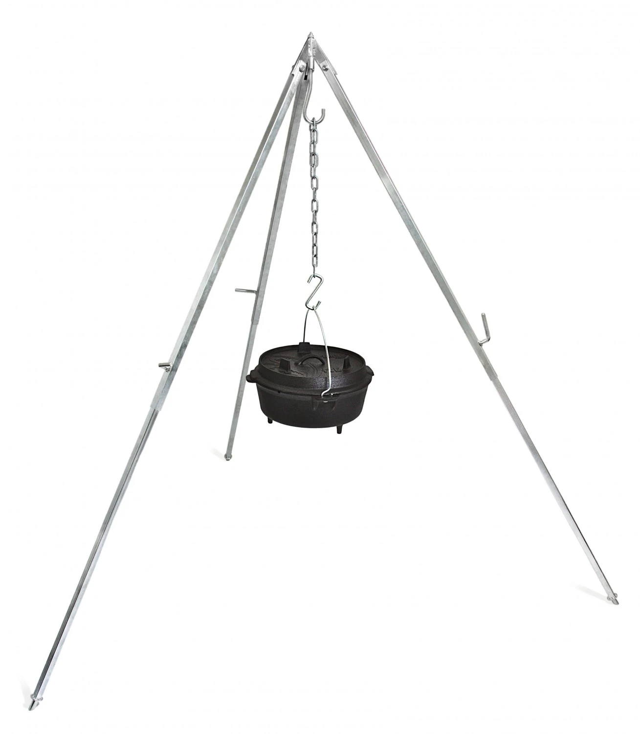 An dem robusten Gestellt mit Haken können Sie neben den verschiedenen Dutch Oven natürlich auch einen Grillrost (z.B. der Petromax Hängerost) oder die Peteromax Hänge-Feuerschale befestigen und das Dreibein zu einem Schwenkgrill machen.