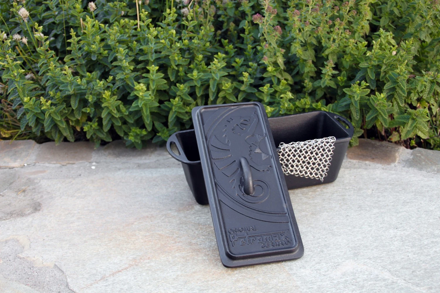 Die Petromax Kastenform aus Gusseisen mit Deckel ist auf Ihrem Grill und auf offenem Feuer universal einsetzbar!
