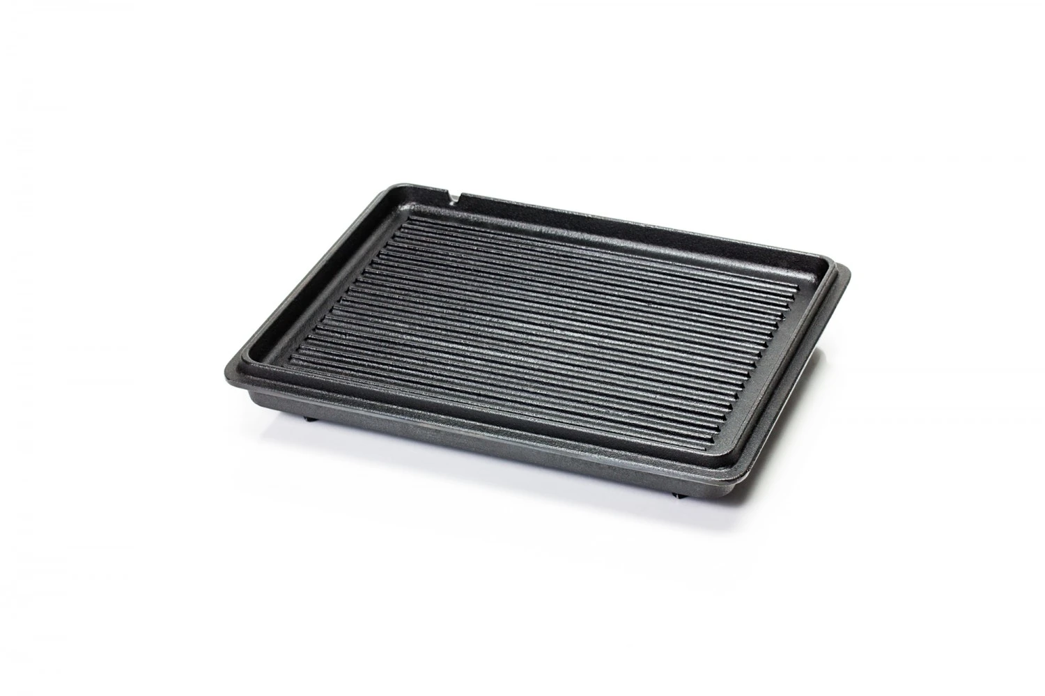 Der Deckel der Kastenform lässt sich multifunktional einsetzen. Zum einen dient er als normaler Verschluss der Form beim Kochen. Er kann aber auch einzeln verwendet werden. Die Innenseite des Deckels besitzt eine geriffelte Oberfläche, auf der Sie wunderbar über einer Hitzequelle wie mit einer Bratpfanne Würstchen oder Steaks braten können. Auch als Servierplatte kann der Deckel so verwendet werden.
