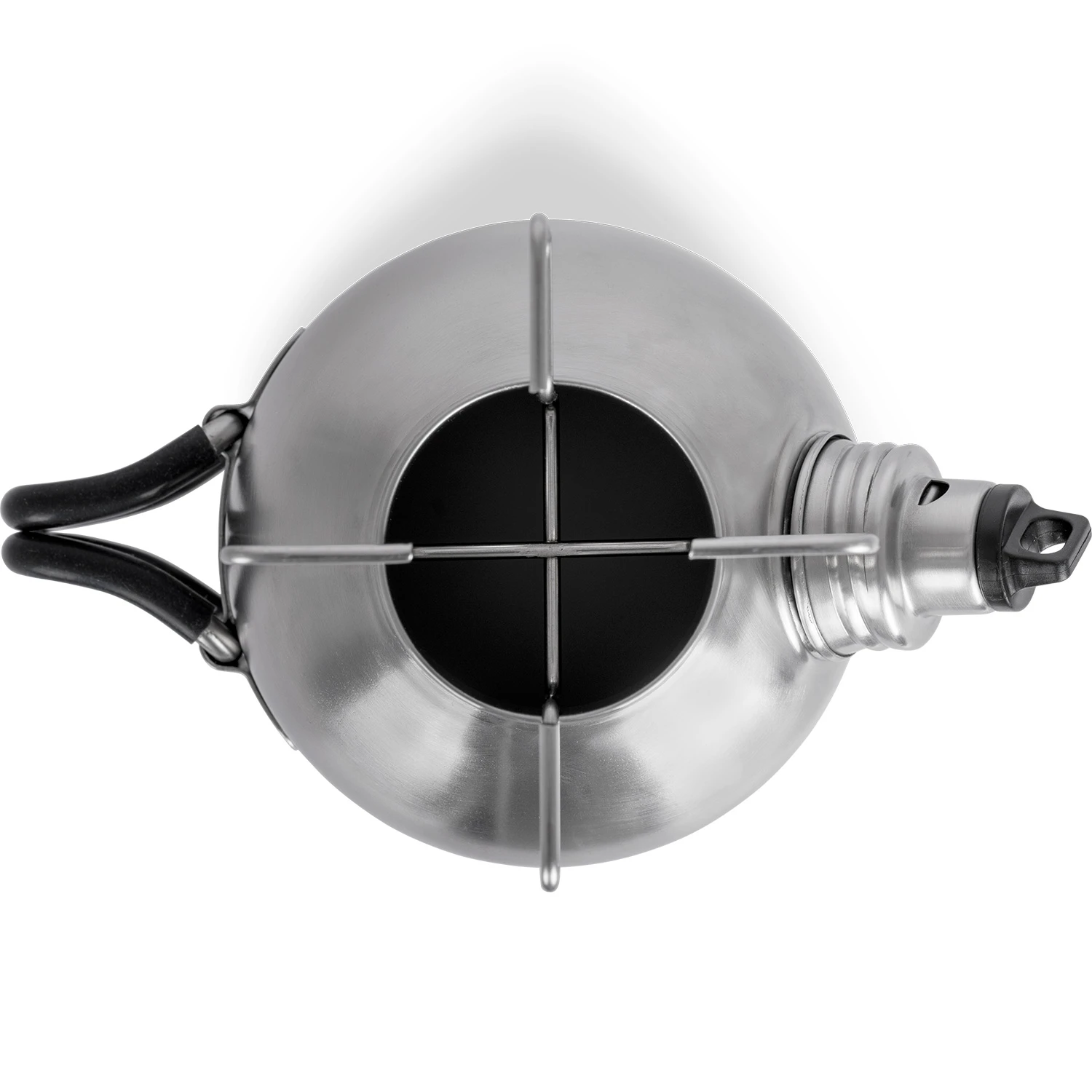 Der doppelwandige Aufbau der Feuerkanne bringt in der Wassertasche bereits wenige Minuten nach dem Entzünden des Feuers das Wasser zum Kochen. Die Dampfpfeife signalisiert, dass das Wasser den Siedepunkt erreicht hat.