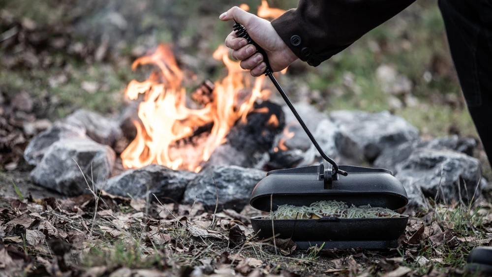 Der Petromax Kartoffelbräter richtet sich an alle, die beim Campen oder in der heimischen Feuerstelle schnell und unkompliziert leckere Kartoffeln zubereiten möchten. Damit sparen sie sich die Aluminiumfolie zum Einwickeln und das Vorkochen der Kartoffeln, denn die Gusseisenform sorgt für perfekte Ergebnisse ohne Austrocknen.