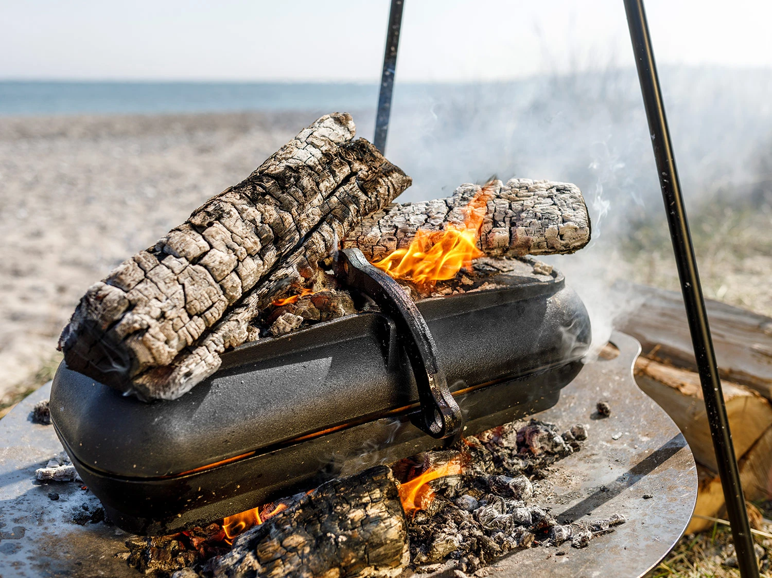 Der Petromax XL Kartoffelbräter richtet sich an alle, die beim Campen oder in der heimischen Feuerstelle schnell und unkompliziert leckere Kartoffeln zubereiten möchten. Damit sparen sie sich die Aluminiumfolie zum Einwickeln und das Vorkochen der Kartoffeln, denn die Gusseisenform sorgt für perfekte Ergebnisse ohne Austrocknen.