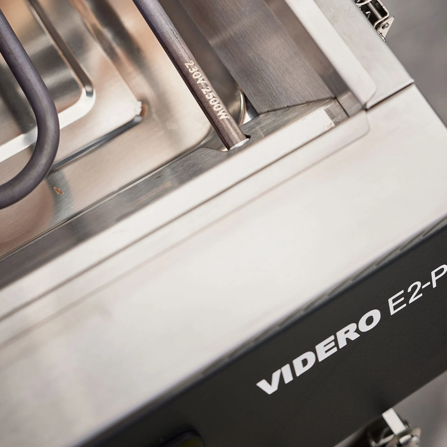 Wie die Videro Grillstationen verfügt auch der kompakte Videro E2-P über eine Sichtscheibe in der doppelwandigen Haube. Damit haben sie auch bei geschlossener Haube das Grillgut stets im Blick und riskieren keinen Temperaturabfall im Inneren durch das Anheben der Haube.