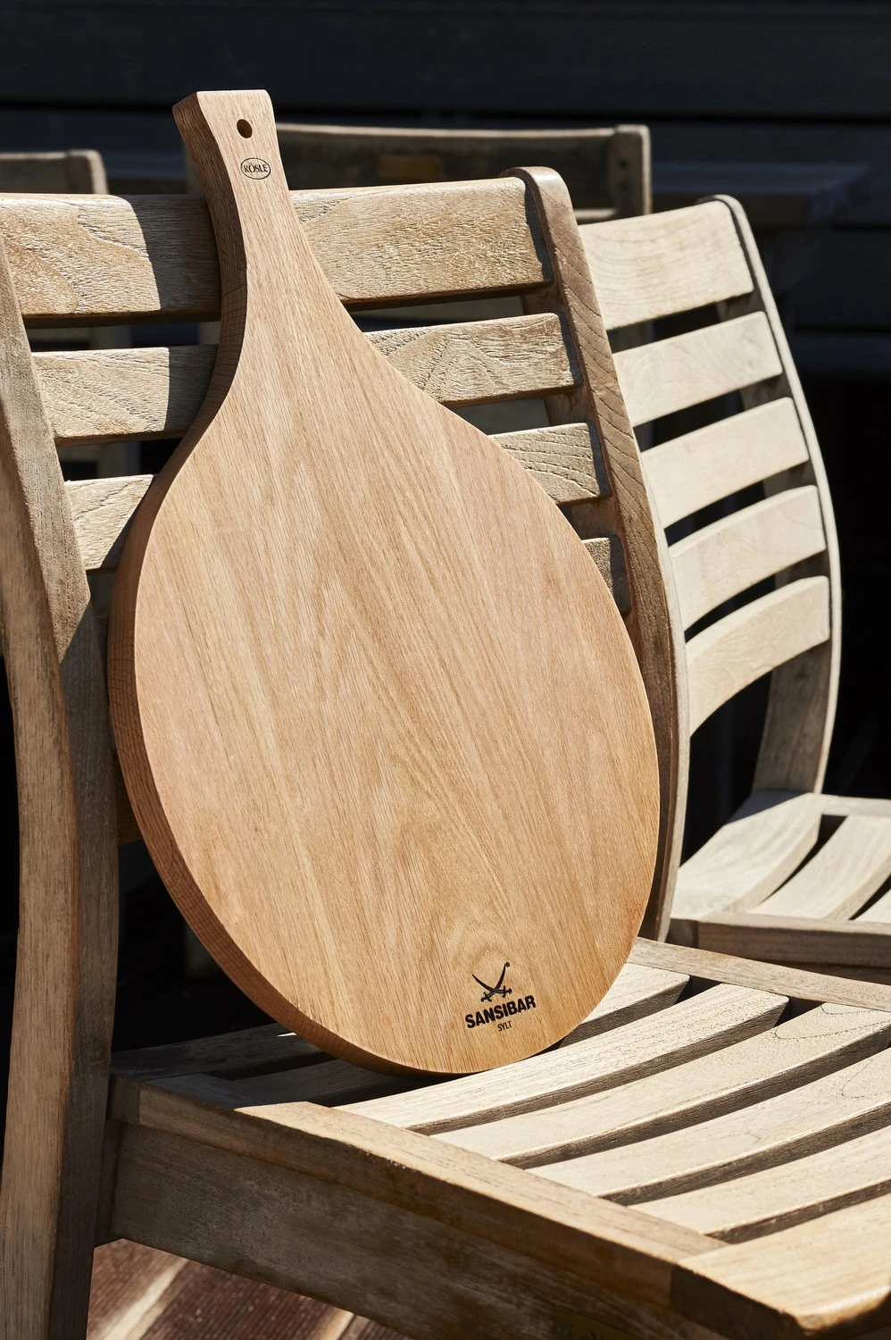 Das hochwertig verarbeitete Brett besteht aus formstabilem und dekorativem Eichenholz und fügt sich so auch in nahezu jede Tischdeko perfekt ein.