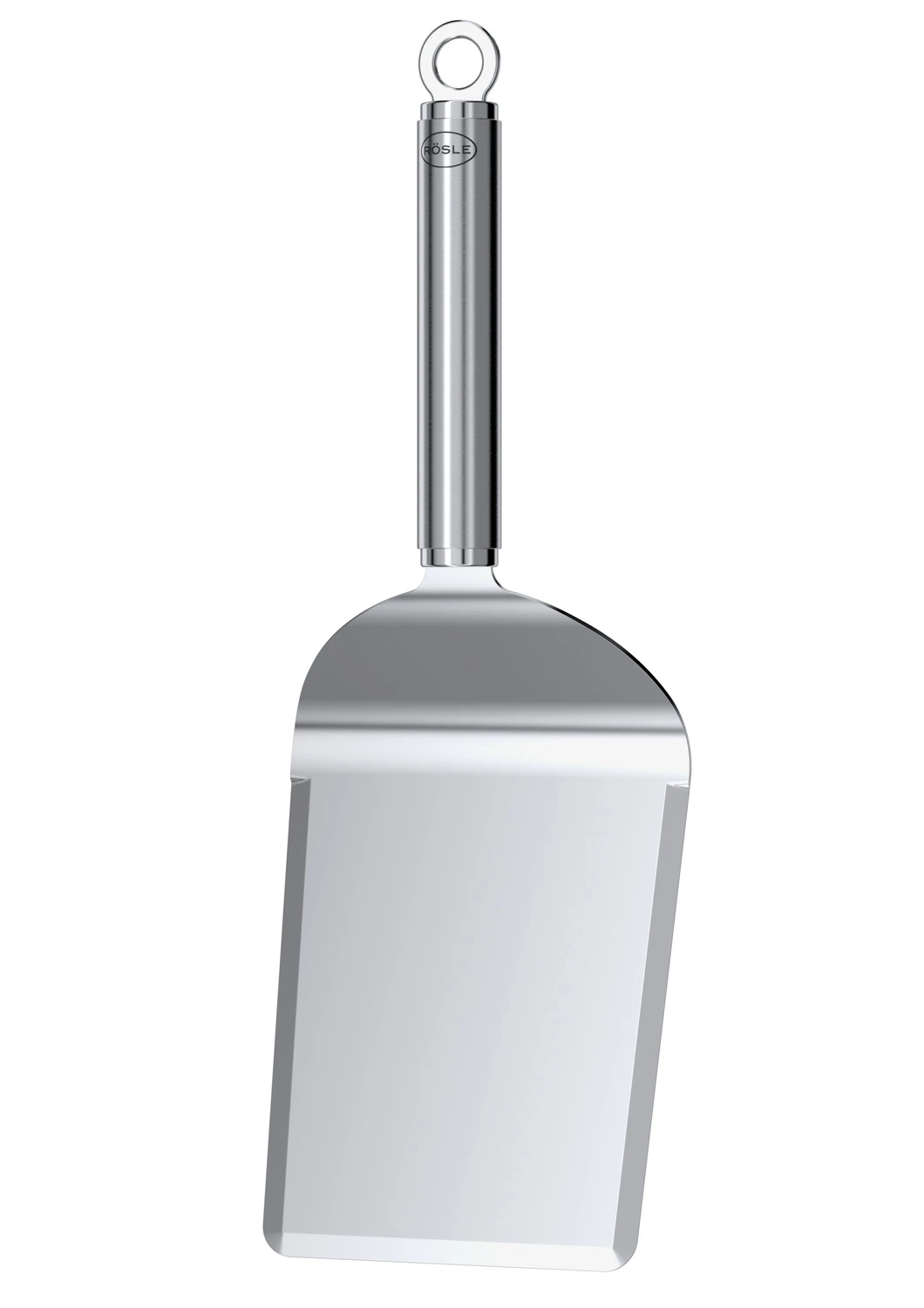 Komplettiert wird der Plancha Spachtel von Rösle von einem massiven, runden Griff, der am Ende mit einer praktischen Öse zum Aufhängen ausgestattet ist.
