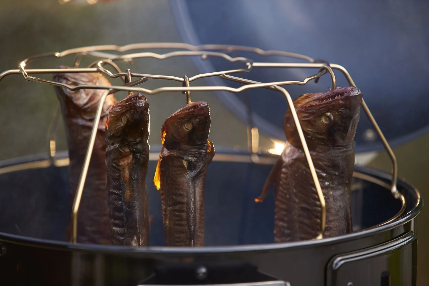 Auch die Ergebnisse aus dem Smoker überzeugen auf voller Linie. Auf den zwei Grillebenen gelingen Pulled Pork, Smoked Ribs oder ein stundenlang gegartes Brisket ganz hervorragend. Die große Höhe der Garkammer erlaubt es sogar, ganze Fische oder auch selbstgemachte Würste hängend zu räuchern. Im Lieferumfang sind hierfür bereits ein Fischhalter und 6 Räucherhaken eingeschlossen. Reicht trotz zwei Garebenen der Platz immer noch nicht aus, ist es optional möglich, noch eine dritte Ausbaustufe zu installieren.