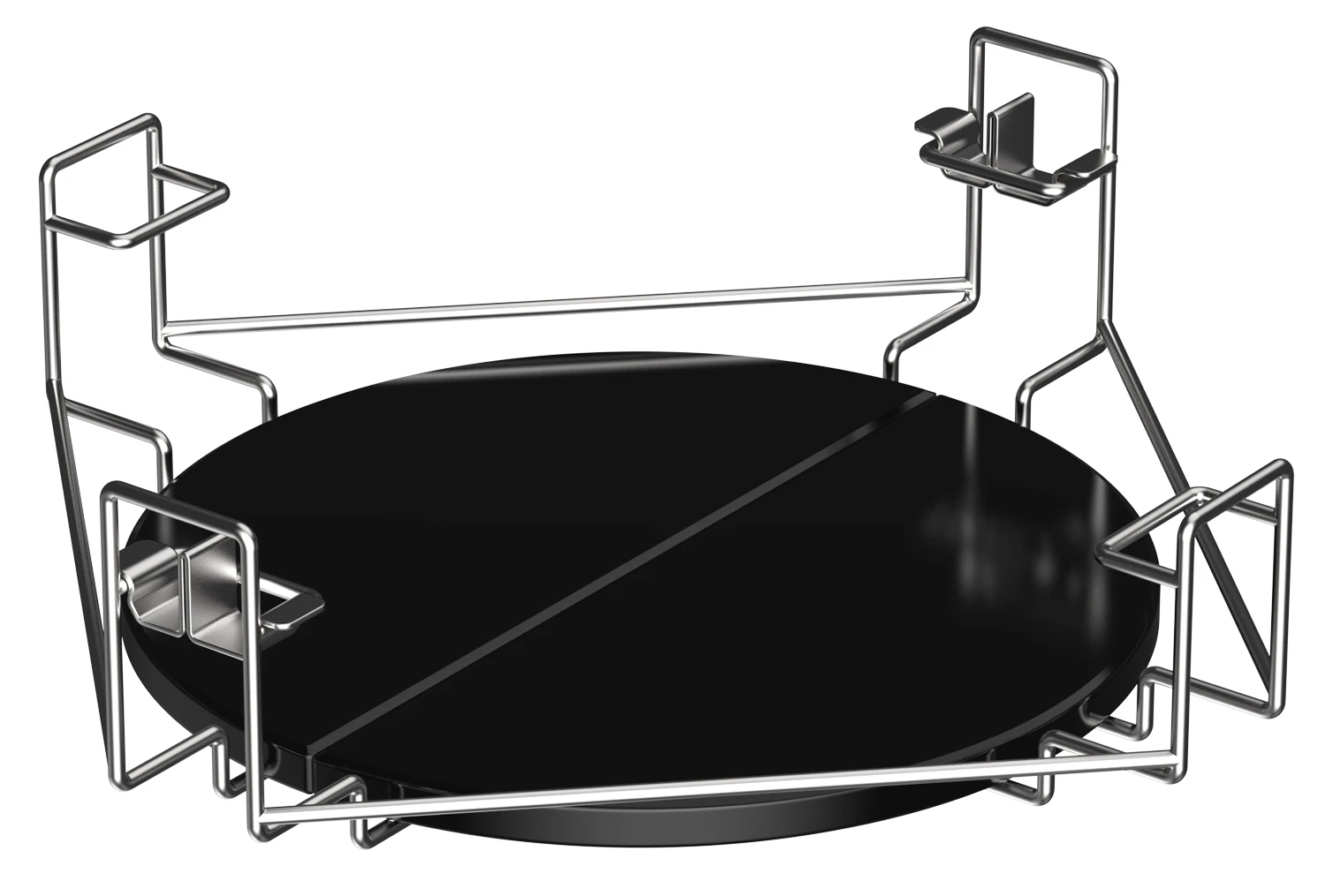 Das Rostsystem besteht aus einem Halter, 2 halben Edelstahlgrillrosten und 2 halben Hitzedeflektoren aus Keramik (Plate Setter). Die geteilten Deflektorsteine ermöglichen das indirekte Grillen auf gesamter oder halber Grillfläche. Durch ihre spezielle Beschichtung sind sie beiden Deflektorsteine besonders pflegeleicht und verschmutzen nicht so leicht.