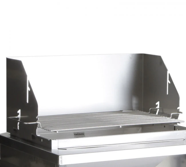 Eines der wichtigsten Zubehörteile für den Thüros T1 ist das Windansteckblech. Es lässt sich kinderleicht am Grill feststecken und dient neben dem Schutz der Glut und des Grillgutes vor Wind u.a. auch der Höhenverstellung des Grillrostes. Dazu ist die Verwendung des originalen Grillrostes notwendig.